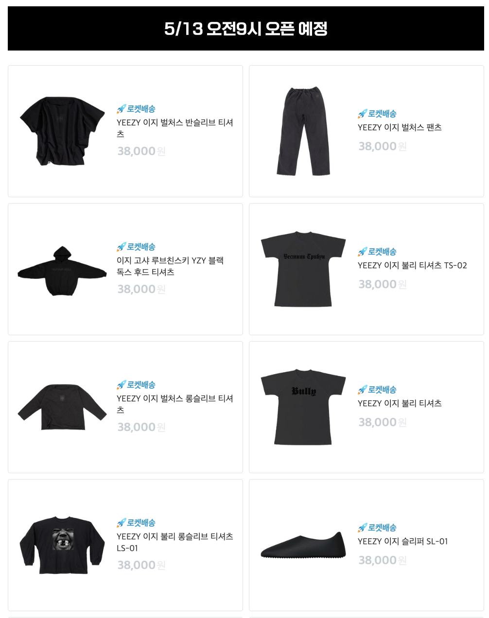 | 온라인 구매 | 쿠팡 기획전 통해 Yeezy 일부 제품 순차 발매 |