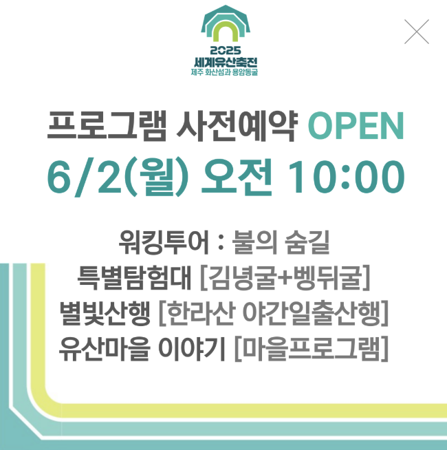 7월 4일(금)부터 7월 22일(화)까지 제주에서 열리는 2025 세계유산축전 프로그램으로