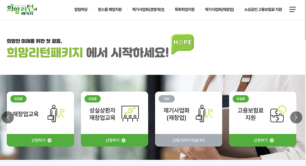 | 재창업 교육 | 전액 무료 | 창업계획 수립부터 마케팅 전략까지 교육 |